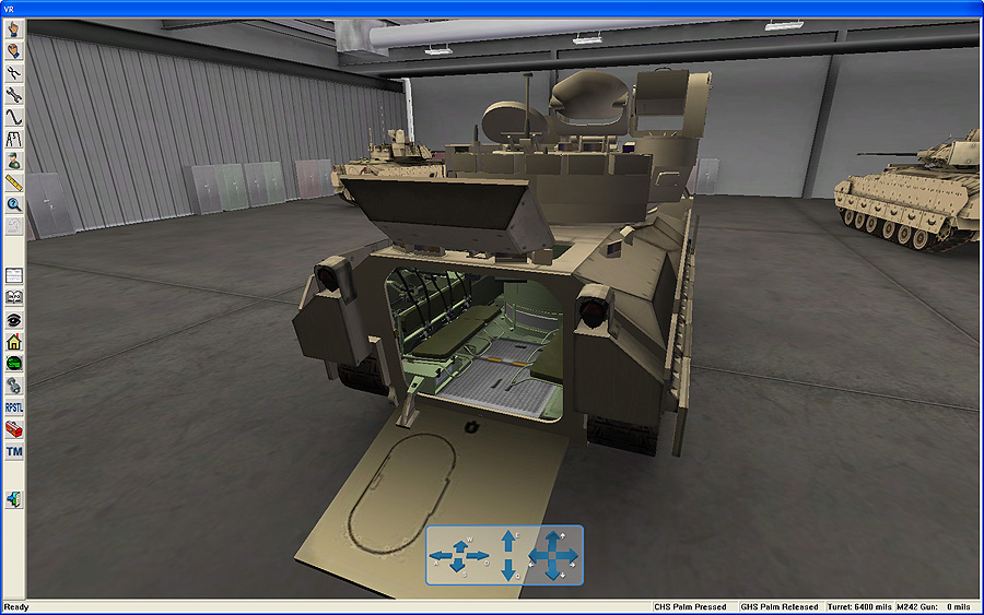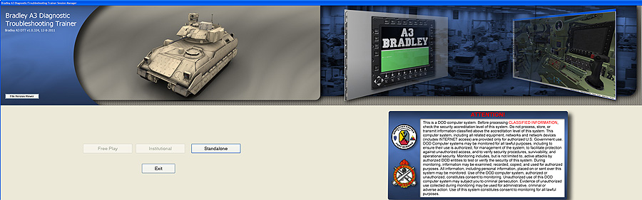 Description: This simulation trainer is used to provide skill-level development for system operation, fault diagnosis, troubleshooting, adjustments, removal/replacement and repair tasks for Bradley A3 maintainers.